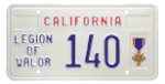 | Legion of Valor—Passenger | Blue on white | LEGION OF VALOR 123 | 001 to LEGION OF VALOR 279 (as of Dec 24, 2023)[23] | Sticker placed at right denoting the decoration held by the registrant: Medal of Honor (Army, Navy or Air Force), Distinguished Service Cross, Navy Cross, or Air Force Cross. | |