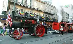 Fairground calliope trailer being hauled by a U.S.-built traction engine – New Orleans Mardi Gras 2007