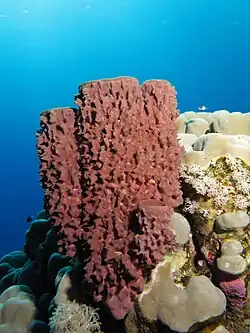 Sea sponges are also of important use in the wild. They play an important role in nutrient recycling and in filtering the water[5] which is useful for many of the reefs that they live in as clearer water makes sunlight more accessible for photosynthesizing organisms in the same area.[13] Many sponges also serve as a habitat for a variety of other organisms. They can serve as microhabitats,[5] with conditions different from the larger surrounding area. Tube sponges specifically, often have small fish and other inhabitants living inside of the tubes.[6]