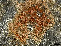 Caloplaca adnexa is a species of saxicolous (rock-dwelling), crustose lichen in the family Teloschistaceae. It was formally described as a new species in 1977 by Czech lichenologist Antonín Vězda. The type specimen was collected from the mountain Popova Šapka in the former Yugoslavia (now North Macedonia), at an altitude of 2,000 m (6,600 ft).[1] In addition to Europe, it is also found in North America.[2]