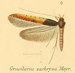 Caloptilia zachrysa is a moth of the family Gracillariidae. It is known from China, India, Japan (the islands of Honshū and Kyūshū), Korea, Sri Lanka[2] and Taiwan.[3]