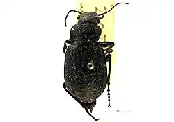 Calosoma cancellatum, the latticed beautiful black searcher, is a species of ground beetle in the subfamily of Carabinae.[1] It was described by Eschscholtz in 1833.[1] This species is found in British Columbia, Arizona, California, Idaho, Montana, Nevada, Oregon, Utah and Washington. Its habitat consists of open dry ground, and may also be found in cultivated fields.