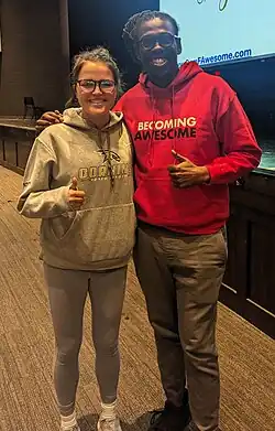![]() Awesome (right) with a student during a motivational talk, November 2023 | ||||||||||||