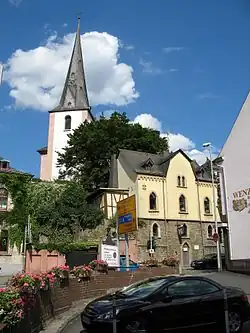 St. Peter's and St. Paul's Catholic Church stands in the Old Town's northwest. A “Saint Peter’s Church” (St. Peter Kirche) in Camberg had its first documentary mention in 1156. The oldest part of today's church is the tower built in 1580. After the nave collapsed in the 18th century, a new church had to be built. It was built by the Dillenburg building inspector Johann Friedrich Sckell in the Zopfstil (a late Rococo and early Classicism development), and is therefore one of the few examples of this building style in the region. The Electorate of Trier Auxiliary Bishop Johannes Maria von Herbain consecrated this church on 15 July 1781 in honour of the Apostles Peter and Paul.[15]