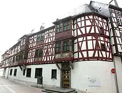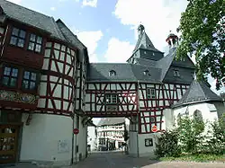 The town's most popular sightseeing spot is the row of timber-frame houses that together make up the Amthof, the seat of the long defunct Amt. It stretches over a frontage of 155 m,[14] making it one of Hesse's biggest timber-frame structures. The representative building was built in 1605 on a former building's foundations. In the years that followed, up until 1669, it was further expanded and the three formerly separate buildings were melded into one great structure.
