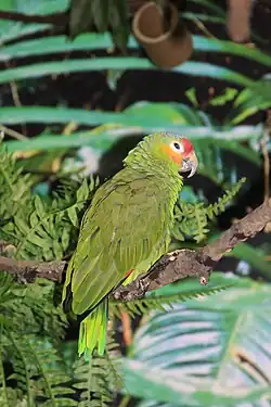 Red-lored amazon (Amazona autumnalis) in one of the exhibits.