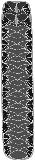 It has been argued that Camenella, Kelanella and Lapworthella, assuming a slug-like anatomy, had an anterior 'head valve' followed by pairs of asymmetric valves running in pairs along their dorsal surface.[5]