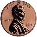 | A standard uncirculated Lincoln cent | A Lincoln cent displaying deep cameo |