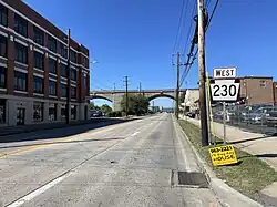 U.S. Route 230 Bypass (US 230 Byp.) was a bypass of the section of US 230 that ran through the city of Harrisburg. The route began at US 230 and US 22 Byp. at the intersection of Cameron Street, Maclay Street, and Arsenal Boulevard in the northern part of Harrisburg near the Farm Show Complex. US 230 Byp. headed southeast concurrent with US 22 Byp. along Arsenal Boulevard, passing to the south of Harrisburg State Hospital. The two routes turned east-northeast onto Herr Street and continued to an intersection with US 22 (Walnut Street) near Penbrook, where US 22 Byp. ended. US 230 Byp. continued northeast concurrent with US 22, passing through Progress and widening into a divided highway. US 230 Byp. split from US 22 by heading south on a freeway. The route came to an interchange with Derry Street near Oakleigh before the freeway ended at an intersection with US 322/US 422. US 230 Byp. continued southeast as an undivided surface road and crossed PA 441 near Oberlin before reaching the Harrisburg East interchange with the Pennsylvania Turnpike (I-80S). The bypass route continued south and ended at an intersection with US 230 in Highspire.[26]
