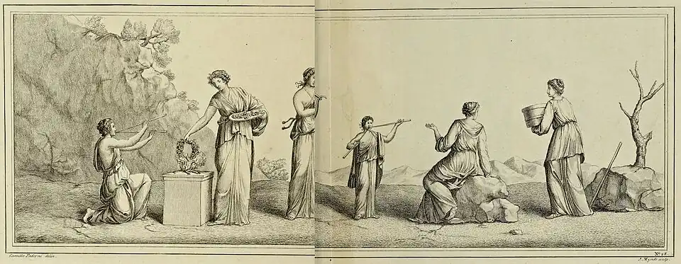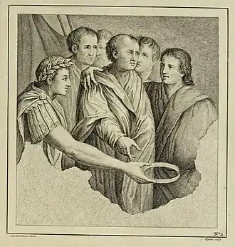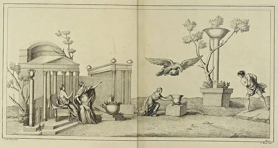 Sketches by Paderni based on other paintings, as part of George Turnbull's ca 1740 book, A treatise on ancient painting.[4]