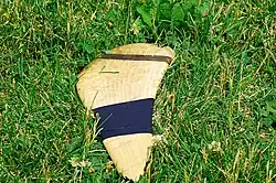For some time in the 1970s, hurleys made from plastic were used, mainly produced by Wavin. These proved more likely to cause injury and were phased out. As of 2012, at least one manufacturer was producing synthetic hurleys approved for use by the GAA.[8] On wooden hurleys, steel bands are used to reinforce the flattened end - though these are not permitted in camogie due to increased risk of injury. Bands have been put on hurleys since the beginning; the 8th century Brehon Laws permit only a king's son to have a bronze band, while all others must use a copper band.