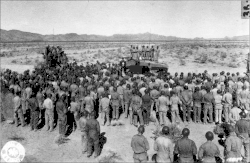 Built in 1942, Camp Clipper and Camp Essex were built to prepare troops to do battle in North Africa to fight the Nazis during World War II. At Camp Clipper were trained the 93rd Infantry Division. The trained troops went on to fight in the North African campaign. Camp Essex was a temporary (transitional) camp built for the handling of incoming/departing troops. When completed, Camp Clipper had 36 shower buildings, an outdoor theater, 191 latrines, 149 wooden tent frames, and a 50,000-gallon water tank. Also built was a 500,000 gallon concrete reservoir and two 740-foot-deep wells. Camp Clipper had 14 training ranges. The camp was used shortly in 1944 for Italian prisoners of war. The camp closed on 16 March 1944 and is now overseen by the Bureau of Land Management. The army used live-fire exercises and warning signs are still on the site.[3][4][5]