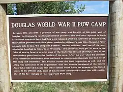Camp Douglas was an internment camp for Prisoners of War (POW) during World War II, located in the city of Douglas, Wyoming, United States. Between January 1943 and February 1946 in the camp housing first Italian and then German prisoners of war in the United States. While there are few remaining structures, the walls of the Officer's Club were painted with murals by three Italian prisoners.[2] These paintings depicting western life and folklore are now registered with the United States Department of the Interior National Park Service on the National Register of Historic Places. The story of this POW camp is an important part of the history of the town of Douglas.