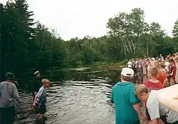 Camp Wanakita was designed as a replacement for Erie Heights on Lake Erie which was itself a replacement for Camp Tekahoinwake on the Grand River. Both of these locations were considered too developed so George Jones and co-workers from the YMCA chose Koshlong Lake as the site for Wanakita in 1953. The name "Wanakita" was chosen by Keith Smith. Wanakita began as an all-boys camp and during its early years, the nurse was the only woman who was regularly on the camp grounds. In 1969, the camp started offering the same opportunities to girls.[5] Since 1991, Wanakita has partnered with Hemophilia Ontario and offered instruction on the proper use of clotting agents.[6][7]