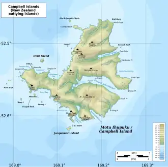![]() Map of Campbell Island / Motu Ihupuku | |