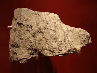 References ^ a b c KennedyKirsten; R, GiblingMartin (2011-11-10). "The Campbellton Formation, New Brunswick, Canada: paleoenvironments in an important Early Devonian terrestrial locality" . Canadian Journal of Earth Sciences . 48 (12): 1561– 1580. Bibcode :2011CaJES..48.1561K . doi :10.1139/e11-055 . ^ a b c d e f g h i j k l m n o p q Kennedy, Kirsten L.; Miller, Randall F.; Gibling, Martin R. (2012-11-15). "Palaeoenvironments of Early Devonian fish and other aquatic fauna of the Campbellton Formation, New Brunswick, Canada" . Palaeogeography, Palaeoclimatology, Palaeoecology . 361– 362: 61– 72. Bibcode :2012PPP...361...61K . doi :10.1016/j.palaeo.2012.08.002 . ISSN 0031-0182 . ^ a b c Burrow, Carole J.; Turner, Susan; Desbiens, Sylvain; Miller, Randall F. (August 2008). "Early Devonian putative gyracanthid acanthodians from eastern CanadaInternational Geoscience Programme (IGCP) Contribution 491, Middle Palaeozoic Vertebrate Biogeography, Palaeogeography, and Climate" . Canadian Journal of Earth Sciences . 45 (8): 897– 908. doi :10.1139/e08-033 . ISSN 0008-4077 . ^ a b Burrow, Carole J.; Turner, Susan; Maisey, John G.; Desbiens, Sylvain; Miller, Randall F. (2017). "Spines of the stem chondrichthyan Doliodus latispinosus (Whiteaves) comb. nov. from the Lower Devonian of eastern Canada" . Canadian Journal of Earth Sciences . 54 (12): 1248. Bibcode :2017CaJES..54.1248B . doi :10.1139/cjes-2017-0059 . hdl :1807/78890 . ISSN 0008-4077 . ^ a b Turner, Susan; Miller, Randall F. (January 2008). "Protodus jexi Woodward, 1982 (Chondrichthyes), from the Lower Devonian Campbellton Formation, New Brunswick, Canada" . Acta Geologica Polonica . 58 (2): 133– 145. ^ a b c Belles-Isles, Michel (1989-11-01). "Yvonaspis , nouveau genre d'Osteostraci (Vertebrata, Agnatha) du Dévonien (Emsien–Eifélien) des Grès de Gaspé (Québec, Canada)" . Canadian Journal of Earth Sciences . 26 (11): 2396– 2401. Bibcode :1989CaJES..26.2396B . doi :10.1139/e89-204 . ISSN 0008-4077 . ^ a b c Randall, F. Mill (2007-12-31). "Pterygotus anglicus Agassiz (Chelicerata: Eurypterida) from Atholville, Lower Devonian Campbellton Formation, New Brunswick, Canada" . Palaeontology . 50 (4): 981– 999. doi :10.1111/j.1475-4983.2007.00683.x . ISSN 0031-0239 . S2CID 140667798 . ^ Wilson, Heather M. (2006). "Juliformian Millipedes from the Lower Devonian of Euramerica: Implications for the Timing of Millipede Cladogenesis in the Paleozoic" . Journal of Paleontology . 80 (4): 638– 649. doi :10.1666/0022-3360(2006)80[638:JMFTLD]2.0.CO;2 . ISSN 0022-3360 . JSTOR 4095102 . S2CID 85823417 . ^ a b c Shear, W.; Gensel, P.; Jeram, A. (1996). "Fossils of large terrestrial arthropods from the Lower Devonian of Canada" . Nature . 384 (6609): 555– 557. Bibcode :1996Natur.384..555S . doi :10.1038/384555A0 . S2CID 4367636 . ^ a b Miller, Randall; Kennedy, Kirsten; Gibling, Martin (2012-03-20). "A eurypterid from the lacustrine facies of the Early Devonian Campbellton Formation, New Brunswick, Canada" . Atlantic Geology . 48 : 14– 19. doi :10.4138/atlgeol.2012.002 . ISSN 1718-7885 . ^ a b c d e f g h i j k l m n o p q r s t u v w KENNEDY, K. L.; GENSEL, P. G.; GIBLING, M. R. (2012-06-29). "Paleoenvironmental Inferences from the Classic Lower Devonian Plant-Bearing Locality of the Campbellton Formation, New Brunswick, Canada" . PALAIOS . 27 (6): 424– 438. Bibcode :2012Palai..27..424K . doi :10.2110/palo.2012.p12-004r . ISSN 0883-1351 . S2CID 128939115 . ^ Bonacorsi, Nikole K.; Gensel, Patricia G.; Hueber, Francis M.; Leslie, Andrew B. (2021-03-01). "Omniastrobus gen. nov., an Emsian Plant with Implications for the Evolution of Heterospory in the Early Devonian" . International Journal of Plant Sciences . 182 (3): 198– 209. doi :10.1086/712356 . ISSN 1058-5893 . S2CID 232050463 . ^ Andrews, Henry N.; Gensel, Patricia G.; Kasper, Andrew E. (1975-08-15). "A new fossil plant of probable intermediate affinities (Trimerophyte–Progymnosperm)" . Canadian Journal of Botany . 53 (16): 1719– 1728. doi :10.1139/b75-201 . ISSN 0008-4026 . ^ Gensel, Patricia G.; Milano, Amelia; Willoughby, Andrew; Belcher, James (1 May 2025). "A New Zosterophyll with Novel Emergence and Cuticle Features from the Early Devonian of New Brunswick, Canada". International Journal of Plant Sciences . 186 (3): 152– 166. doi :10.1086/734304 . ^ Gensel, Patricia G.; Wellman, Charles H.; Taylor, Wilson A. (November 2013). "Spore Wall Ultrastructure of the Lower Devonian Zosterophylls Renalia hueberi and Zosterophyllum divaricatum " . International Journal of Plant Sciences . 174 (9): 1302– 1313. doi :10.1086/673240 . ISSN 1058-5893 . S2CID 83930515 .
