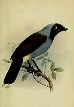 | Speculative redrawing of an azure-naped jay illustration in the colours of a Campina jay | |