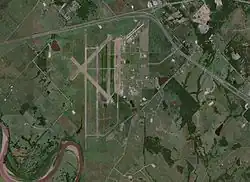 2007 satellite image of the RELLIS Campus; SH 21 at top, SH 47 at right, Brazos River at bottom left