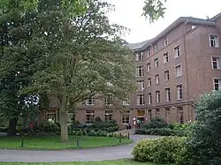 The campus was formerly the Midlands Agricultural and Dairy College before merging with the University of Nottingham in 1947. The college was originally located in Kingston on Soar, about a two-minute walk down the road from the current campus, but relocated to its current location after the First World War. The site (which had been built but not yet occupied prior to the war) was used as a prisoner-of-war camp during the First World War.[31] It was from there that a group of 21 German officers, led by Captain Karl von Müller, escaped through a tunnel dug from one of the huts. 15 tonnes of soil are said to have been removed and hidden under the tiers of a lecture room. All but one of the prisoners were recaptured.