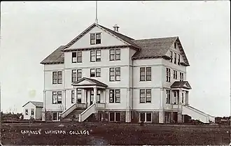 On June 26, 1912, the first building of the Camrose Lutheran College (known as Augustana University College from 1991 to 2004) was opened. Today the campus continues as the Augustana Faculty of the University of Alberta.