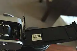The QL designation was a reference to Canon's successful "quick load" system. A stainless steel sprung hinged device inside the rear door makes film loading simpler than competing cameras of the era, allowing the user to lay the film's leader over the drive gear and take-up fingers and close the back. It also made it "repeatable" - by always putting the same sprocket hole over the drive gear, the user could rewind a partially-shot roll (leaving its leader out) and put it back in later. This allowed the user to click past the already-taken frames (with the lens cap on) and then continue. This made it possible to switch back and forth between types of film: black and white, color negative, and color slide.