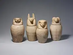- ^ a b c d "Canopic Jars", Archived 2013-01-18 at the Wayback Machine Digital Egypt for Universities, University College London, accessed 18 November 2011