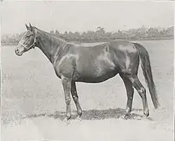 She was one of the best horses sired by Tristan, a brilliant and durable but highly temperamental performer whose wins included the July Cup, Ascot Gold Cup and three editions of the Champion Stakes.[6] Her dam Pilgrimage was a top-class performer who completed a rare double when winning both the 1000 Guineas and 2000 Guineas in 1878. As a broodmare he produced several other good winners including the Epsom Derby winner Jeddah.[7]