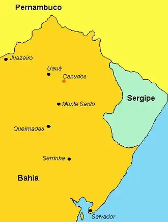 ![]() Map of northern Bahia, showing the location of Canudos | |||||||
