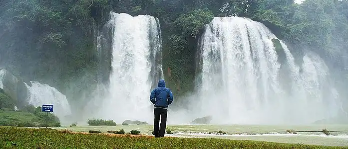 - ^ The two falls have separate names in Chinese: Dé Tiān=德天=Đức Thiên;Bǎn Yuē=板約=Bản Giốc. However, in Vietnamese, the two falls are considered as two parts of one waterfall with the sole name Bản Giốc.