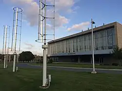 The university built a three-turbine, 5.4-megawatt wind farm off campus, at a cost of $17.6 million in partnership with Natural Forces Technologies, with the aim of producing enough electricity to offset its carbon dioxide emissions. The project took advantage of a government program which paid a premium rate per kilowatt for energy from small-scale green energy facilities. The farm is expected to generate approximately $2.1 million in annual revenue.[33]
