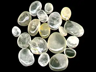 Cape May diamonds are actually pieces of quartz washed down, and worn smooth in the process, from the upper Delaware River.[1] Apocryphally, the trip takes thousands of years.[2][3] However, geologists suggest the pebbles are local in origin, washing out of nearby Pleistocene gravel deposits.[4][5]