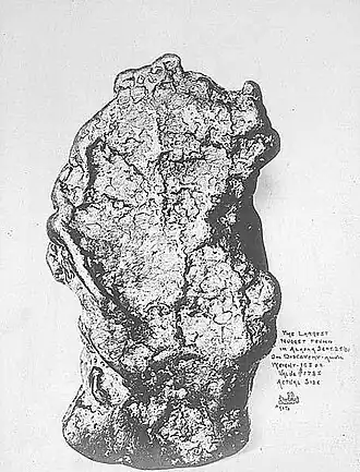 ![]() Photograph of the "Largest nugget found in Anvil Creek" by Beverly Bennett Dobbs | |