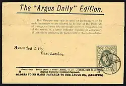 The first items of postal stationery to be issued by the Cape of Good Hope were postcards in 1878; registration envelopes and newspaper wrappers were first issued in 1882; post paid envelopes in 1892 and lettercards in 1895.[8][9]
