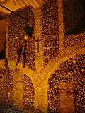 The Capela dos Ossos was completed by Franciscan friars in 1816.[1] An estimated 5,000 corpses were exhumed to decorate the walls of the chapel.[2] The bones, which came from ordinary people who were buried in Évora's medieval cemeteries, were arranged by the Franciscans in a variety of patterns.[3]