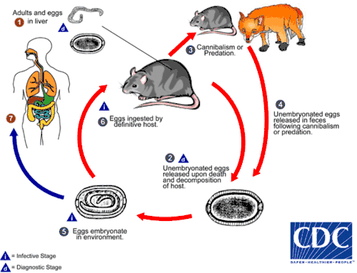 This parasite can be fatal in humans, as transmission and survival of the parasite depend on death of the definitive host in order for the eggs to reach soil and water to embryonate.[8]