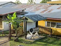 As the capital of Solomon Islands, Honiara contains the majority of the major government buildings and institutions, including Honiara Lauru Land Conference, Honiara Solomon Islands College of Higher Education, International School in Honiara, University of the South Pacific Solomon Islands, Honiara Solomon Islands Ports Authority. These centres are involved in marine research in Solomon Islands.[35] The Dodo Creek Research Station of the Ministry of Agriculture and Lands is based in Honiara.[36] Honiara Central Market is the centre of trading activity in the islands and contains many market stalls selling a wide range of goods. East of the mouth of the Mataniko River is the beach where, in the shallow waters of the sea, wrecks of a Japanese ship destroyed on 23 October 1942 by American artillery and small arms can be seen. At the back of the beach there is a settlement called the Lord Howe Settlement, consisting of a large community of Polynesians from Ongtong Java in the Western Provinces.[37] Chinatown, with its high porches, is said to look like an "Asian Wild West".[37]