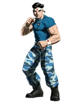Captain Sawada is a Japanese man[4] who works as the second-in-command in the Allied Nations to the character Guile. He uses aspects of multiple fighting styles, including Muay Thai, Shorinji Kempo, Ninjitsu, and Sawada-ryu kenkajutsu.[5][6][7][8] He is portrayed in the 1994 film Street Fighter by Kenya Sawada. He envisioned the character like a samurai, with strengths including being powerful, humble, honest, and faithful.[9] Kenya stated that he came to Los Angeles after hearing that a movie based on Street Fighter II was in the works, eventually contacting the casting director Mary Joe Slater through trial and error. He added that Slater introduced him to producer Edward Pressman and writer-director Steven E. de Souza, emphasizing his physique and action to make up for his lack of English skills.[10] Kenya was considered a "safe, familiar choice" by Capcom according to De Souza, and was originally slated to play the role of Ryu, having portrayed a character similar to Ryu in commercials.[11] De Souza wanted to cast Chinese-American actor Byron Mann, and De Souza chose to not cast Sawada as he wanted someone who had comic timing and better English skills.[12]