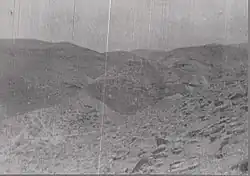 On the right, the 179th Brigade column marched towards Jebel Ekteif (to the south of Talat ed Dumm); their 2/13th Battalion, London Regiment, however, faced a sheer drop of over twenty feet (6.1 m) and had to proceed across intervening ridges into parallel wadis, arriving too late for the attack. Meanwhile, two companies of the 2/16th Battalion, London Regiment from the 179th Brigade, of the 60th (London) Division were ordered to support an attack on Jebel Ekteif by the 2/15th Battalion, London Regiment. By 08:15 they had captured the advanced trenches, three companies, and fought their way up into the firing line on the summit of the hill.[32] At 10:00 the British infantry were reported to have captured this dominating position on the Jerusalem–Jericho road, but a strong counter-attack drove them off. Jebel Ektief was finally captured at about 12:30 when heavy artillery helped the desperate attackers secure their objective.[34][Note 2]