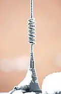 1. ^ Feedlines can be run up through a metal mast at any radio frequency, but a center-routed feedline not common for HF band antennas. Feedlines are more commonly run up through the center of the antenna's radiator at 2.4 GHz, but military whips for 50 MHz to 80 MHz band exist, and are standard issue for the SINCGARS radio in the 30–88 MHz range.
