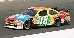 NASCAR officials initially claimed the car was less dependent on aerodynamics, comparing its performance to the trucks of the Craftsman Truck Series.[21] It initially featured a detached wing, which had not been used since the Dodge Charger Daytona and Plymouth Superbird in 1970, in place of a rear spoiler.[19][22] The windshield was more upright to prevent collapse in the event of a rollover, with the added effect of increased drag.[18][19] The radiator air intake was placed below the front bumper of the car, to reduce overheating caused by debris-clogged grilles.[19] The front bumper itself was more box-like and the front airdam was gapped, as opposed to being a flush piece on the older cars, to reduce aerodynamics and slow down the cars.[19]