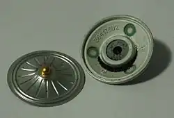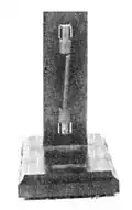 Carbon microphones can be used as amplifiers.[9] This capability was used in early telephone repeaters, making long-distance phone calls possible in the era before vacuum tube amplifiers. In these repeaters, a magnetic telephone receiver (an electrical-to-mechanical transducer) was mechanically coupled to a carbon microphone. Because a carbon microphone works by varying a current passed through it, instead of generating a signal voltage as with most other microphone types, this arrangement could be used to boost weak signals and send them down the line. These amplifiers were mostly abandoned with the development of vacuum tubes, which offered higher gain and better sound quality. Even after vacuum tubes were in common use, carbon amplifiers continued to be used during the 1930s in portable audio equipment such as hearing aids. The Western Electric 65A carbon amplifier was 1.2" in diameter and 0.4" high and weighed less than 1.4 ounces.[10] Such carbon amplifiers did not require the heavy bulky batteries and power supplies used by vacuum tube amplifiers. By the 1950s, carbon amplifiers for hearing aids had been replaced by miniature vacuum tubes (only to be shortly replaced by transistors). However, carbon amplifiers are still being produced and sold.[11]