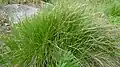 Carex geyeri is a species of sedge known by the common names Geyer's sedge and elk sedge. It is native to western North America from British Columbia to California to Colorado, where it grows in dry areas in mountain meadows, grasslands, and open forest. This sedge produces scattered tufts of stems connected by a network of long rhizomes. The stems are triangular in cross-section and approach half a meter in maximum height. The inflorescence is composed of a cluster of staminate flowers and a cluster of pistillate flowers separated by a node.