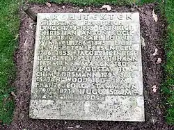 A collective tombstone in the area of the Old Hamburg Memorial Cemetery on the Ohlsdorf Cemetery commemorates important architects, including Wimmel.