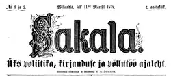 In 1878, Jakobson established the first Estonian-language political newspaper Sakala. The paper quickly became a vital promoter of the cultural awakening. He also had a central role in the establishment of the Society of Estonian Literati, which was an influential Estonian association in the second half of the 19th century.