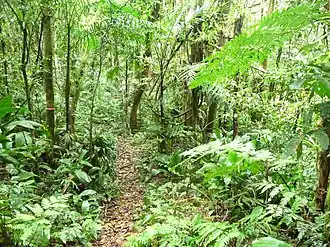 The park is in the Atlantic Forest biome. The vegetation is mainly montane and submontane rainforest.[8] In the highest parts of the park there are small areas of dense high montane rainforest and alpine meadows on shallow and stony soils. There is dense lowland rainforest in the areas below 50 metres (160 ft). Some of the forest is well preserved, with a continuous canopy of more than 20 metres (66 ft), while other areas have secondary formations with a lower and more open canopy. The park interior has areas that are rich in bamboos, particularly Guadua tagoara.[7]