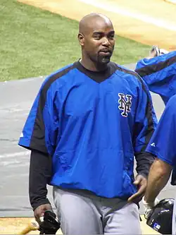 Carlos Juan Delgado Hernández (born June 25, 1972) is a Puerto Rican former professional baseball player and coach. He played in Major League Baseball primarily as a first baseman, from 1993 to 2009, most prominently as a member of the Toronto Blue Jays, where he was a member of the 1993 World Series-winning team, won the 2000 American League (AL) Hank Aaron Award, and was the 2003 AL RBI leader. He was also a two-time AL All-Star player and a three-time Silver Slugger Award winner during his tenure with the Blue Jays.