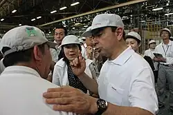Ghosn was a visible leader in recovery efforts after the Japanese earthquake and tsunami on 11 March 2011, one of the worst natural disasters in modern history.[84] On 29 March 2011, he made the first of several visits to the hard-hit Iwaki engine plant in Fukushima prefecture, 50 km (31 miles) from the Fukushima Daiichi nuclear power plant,[85][86][87] and at his direction Nissan restored full operations at the Iwaki factory well ahead of expectations.[88][89][90] He appeared on television in Japan to encourage optimism.[87][91][92][93] In May 2011, Ghosn remained committed to building at least 1 million of Nissan's cars and trucks in Japan annually.[94] In 2011 Ghosn was under scrutiny by the French government for mishandling a spying scandal related to Renault.[95][96]