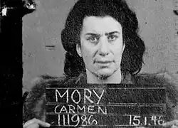 Carmen Castro Mory was born 2 July 1906 in Bern, Switzerland to Dr. Ernest Emil Mory, a Swiss physician in charge of the sanatorium in Switzerland and Leona Castro Bischoff, a Filipino from Iloilo, Philippines.[1] Before the war, she worked as a journalist, including for the Manchester Guardian (now The Guardian).[2] From 1932 to 1937 she worked as a journalist in Berlin, where in 1934 she became an undercover agent for the Gestapo, working under Bruno Sattler.[1][3][4] In 1937 she was assigned to observe publisher Emil Oprecht in Zurich and later that year, politician Max Braun in Paris.[1] She also collected information on the Maginot Line.[3]