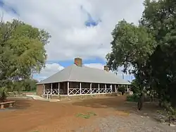 The society also cares for the Macpherson Homestead, located about one kilometre east of the Carnamah townsite.[18][19] The stone homestead was built in the late 1860s and following deterioration was restored with locally raised funds and grants from Lotterywest.[18] The homestead is permanently on the State Register of Heritage Places. The Heritage Council of Western Australia noted that "early settlers played an important and successful role in the development and growth of the Carnamah district" and that "the place has a particular structural interest, with its high walls and steeply pitched roof and bush rafters".[20]