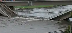 Deck C collapsed between 02:58 and 02:59 (UTC+2) on 11 September 2024. No casualties were reported.[2] However, critical infrastructure inside the bridge—including district heating pipelines—was destroyed, leaving large areas of Dresden without heating. A temporary pipeline was laid across the Augustus Bridge to restore service before winter.[3]